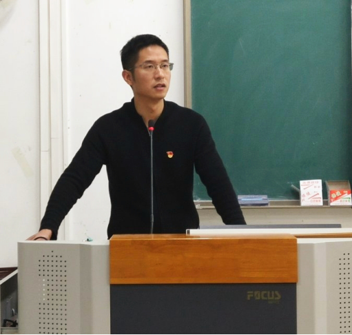 11月7日晚,药学院药学学生第一党支部书记吴玉峰在仙葫校区教学楼2-105教室为支部全体党员、入党积极分子讲授“不忘初心、牢记使命”主题教育专题党课----中美经贸关系发展的回顾与展望。