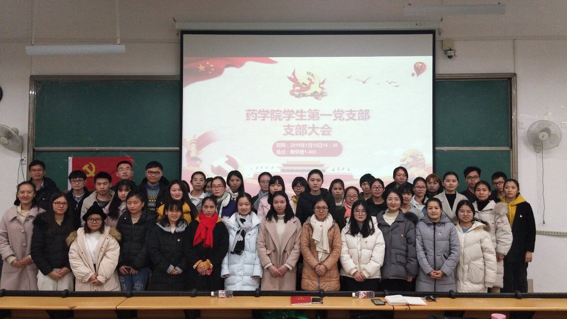2019年1月10日晚,药学院学生第一党支部于教学楼1-203召开支部委员增补、调整大会。本次会议由支部书记凌勇威同志主持,支部44名党员、15名预备党员、47名入党积极分子参加会议。
