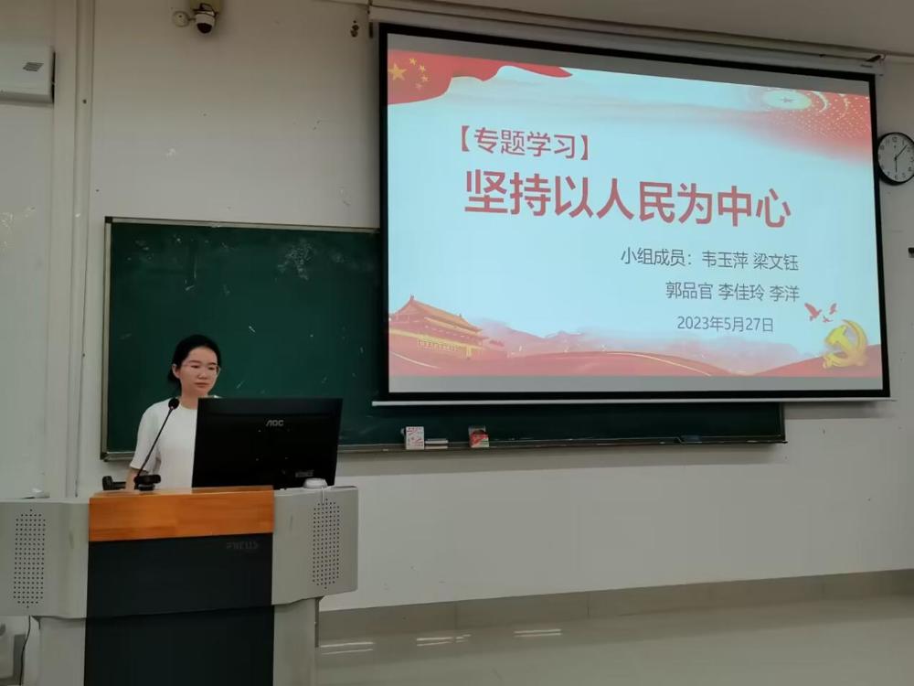 会上,韦玉萍带领支部成员回顾了近五年来中国共产党在提高人民生活水平方面所取得的成就,感悟“全心全意为人民服务”作为党的根本宗旨的深刻内涵和重要意义,会上还播放了支部成员郭品官同学录制的以“坚持以人民为中心”为主题的微视频,分享其学习感悟。