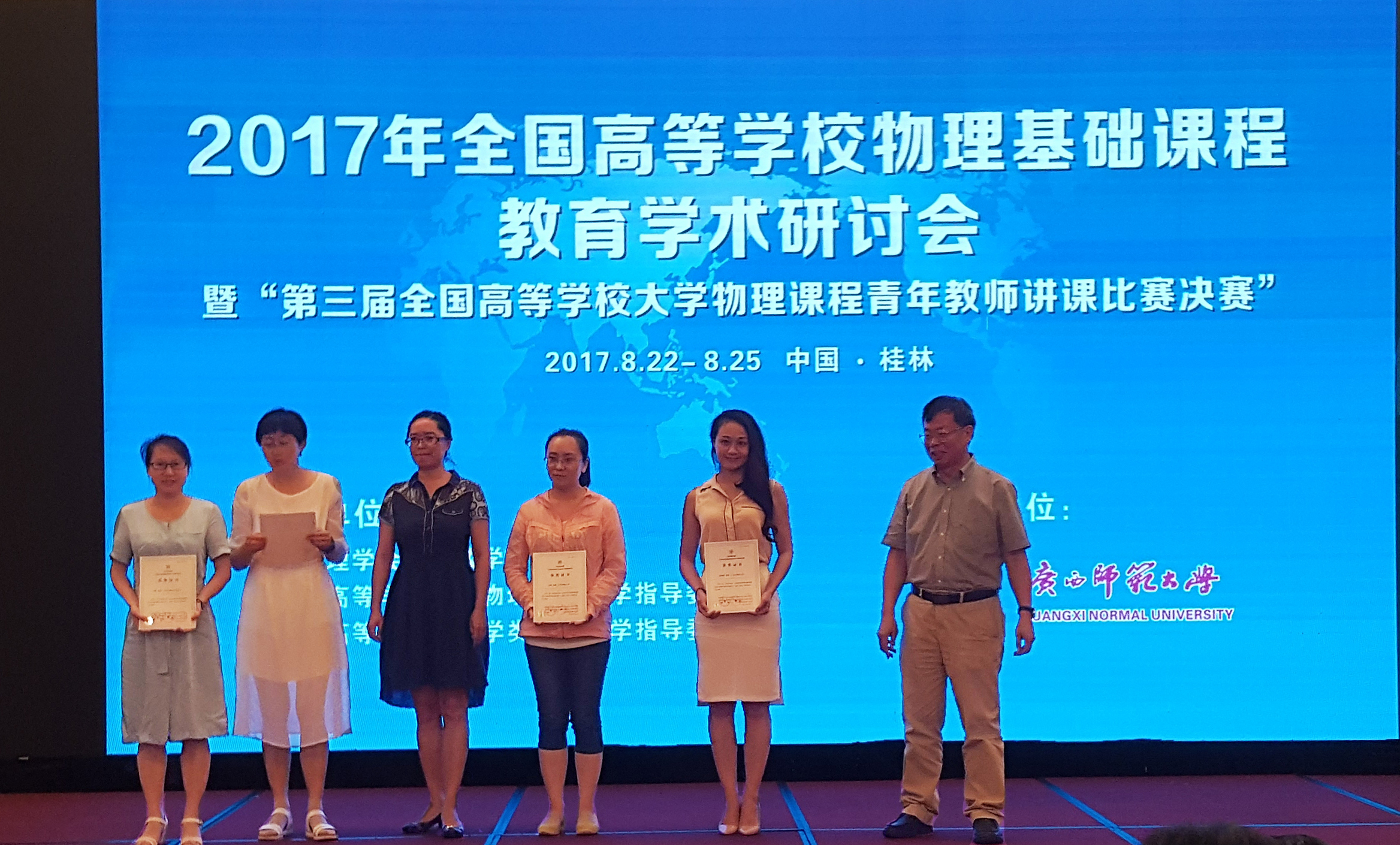 莫嘉雯老师喜获“2017年全国高等学校基础物理课程青年教师讲课比赛”全国总决赛二等奖