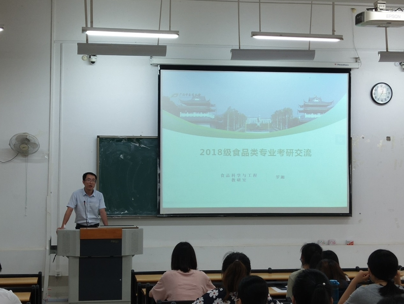 为了加强学风建设,提高人才培养质量,帮助学生对考研尽早了解和认识,药学院食品科学系于2020年6月11日,在教学楼2-203举办了食品类考研辅导专题讲座。讲座活动由2018级辅导员刘航主持,食品科学与工程教研室罗湘老师担任主讲人。有意向考研的2018级食品专业学生40余人聆听了讲座。
