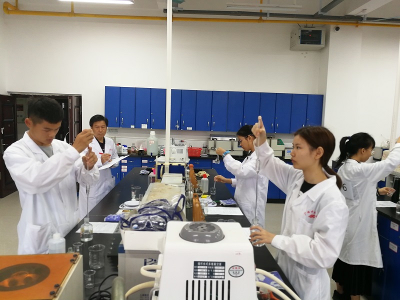 本次大赛由初赛和决赛两部分组成,我院各年级学生积极报名参加。初赛为笔试环节,共有270名学生(涵盖大一、大二、大三同学),经过初赛预选,共有36位同学进入决赛。决赛为实验技能操作大赛“两性药物氢氧化铝的制备”。 36名同学采取抽签方式进行考试,内容包括称量、溶液的配置、酸碱度测定、产品制备和减压抽滤等操作。比赛氛围紧张而激烈,考验参赛选手的动手能力及操作基本功,旨在提升我院同学的综合实践能力,做到理论联系实践。根据评委老师对比赛现场的反馈,发现大部分同学都可以快又好的完成实验,但部分同学细心不足,需要多加训练。