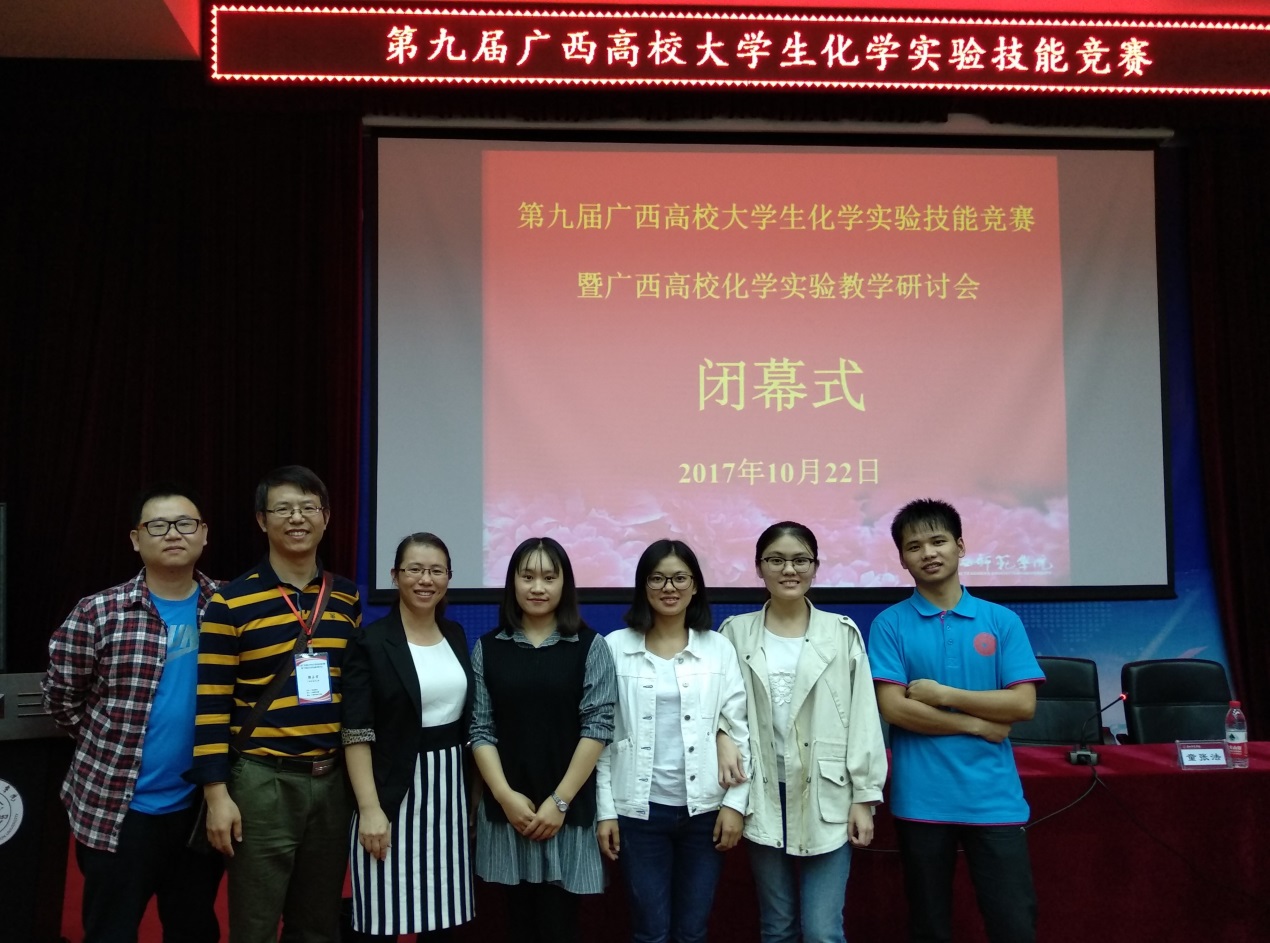 广西高校大学生化学实验技能竞赛每两年举办一次,历来受到区内各高校的重视与参与,在广西区内具有广泛的影响力。竞赛由实验操作部分(70%)及理论笔试部分(30%)组成。所有选手均需参加理论笔试。实验操作分为有机化学组及无机分析组,由竞赛当天抽签随机确定参赛选手的组别,对参赛学生的基础化学知识要求很高。本届赛事共有来自全区27所高校的108名选手参加竞赛,分本科组和专科组。其中本科组设一等奖10人,二等奖12人,三等奖16人。优秀指导教师5人。
