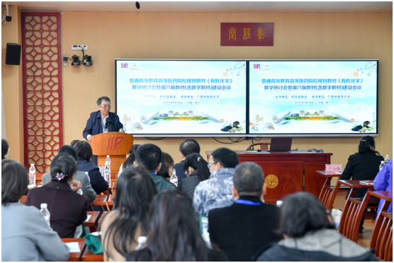 会议由beat365官方网站药学院副院长梁臣艳主持。beat365官方网站教务处副处长冯旭教授在会上致辞,他首先代表beat365官方网站教务处,对参加本次研讨会的各位领导、专家学者及同仁表示热烈的欢迎,并预祝大会取得圆满成功;冯旭教授强调,高质量的教材是培养高质量人才的基础,此次研讨会是深化教育教学改革、推动教材建设与创新的重要举措,他期待各位专家能够通过交流,共同探索有机化学教学的新模式、新路径。随后,药学院院长卢汝梅教授致辞,介绍了药学院的发展概况和学科建设成果,她强调了《有机化学》作为专业基础课程的重要性,期望通过此次研讨会,共同推动有机化学教材的发展,同时欢迎各位专家提出宝贵意见,为中医药事业贡献力量。之后,全国医药院校“十四五”规划教材《有机化学》主编、北京中医药大学吉卯祉教授详细回顾了教材的发展历程,强调每一版的更新都紧跟中医药教育的发展步伐,并提出了新版教材应融入最新研究成果、优化教学内容和增强实践导向的具体要求。科学出版社的郭海燕编辑接着阐述了出版社在高质量教材出版方面的专业支持,包括严格的质量管控、数字化资源开发以及专业团队的支持,致力于为教师和学生提供更先进的学习工具和更丰富的教学资源。