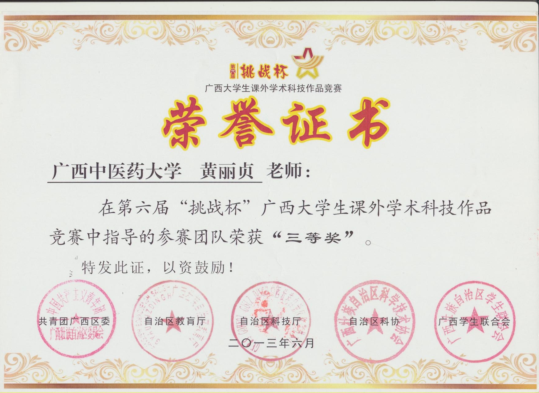 指导学生参加第六届挑战杯