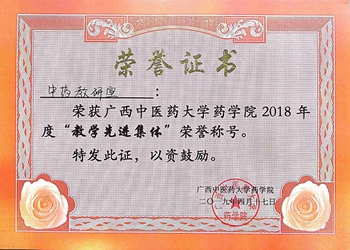 中药教研室喜获beat365官方网站药学院2018年度“教学先进集体”荣誉称号