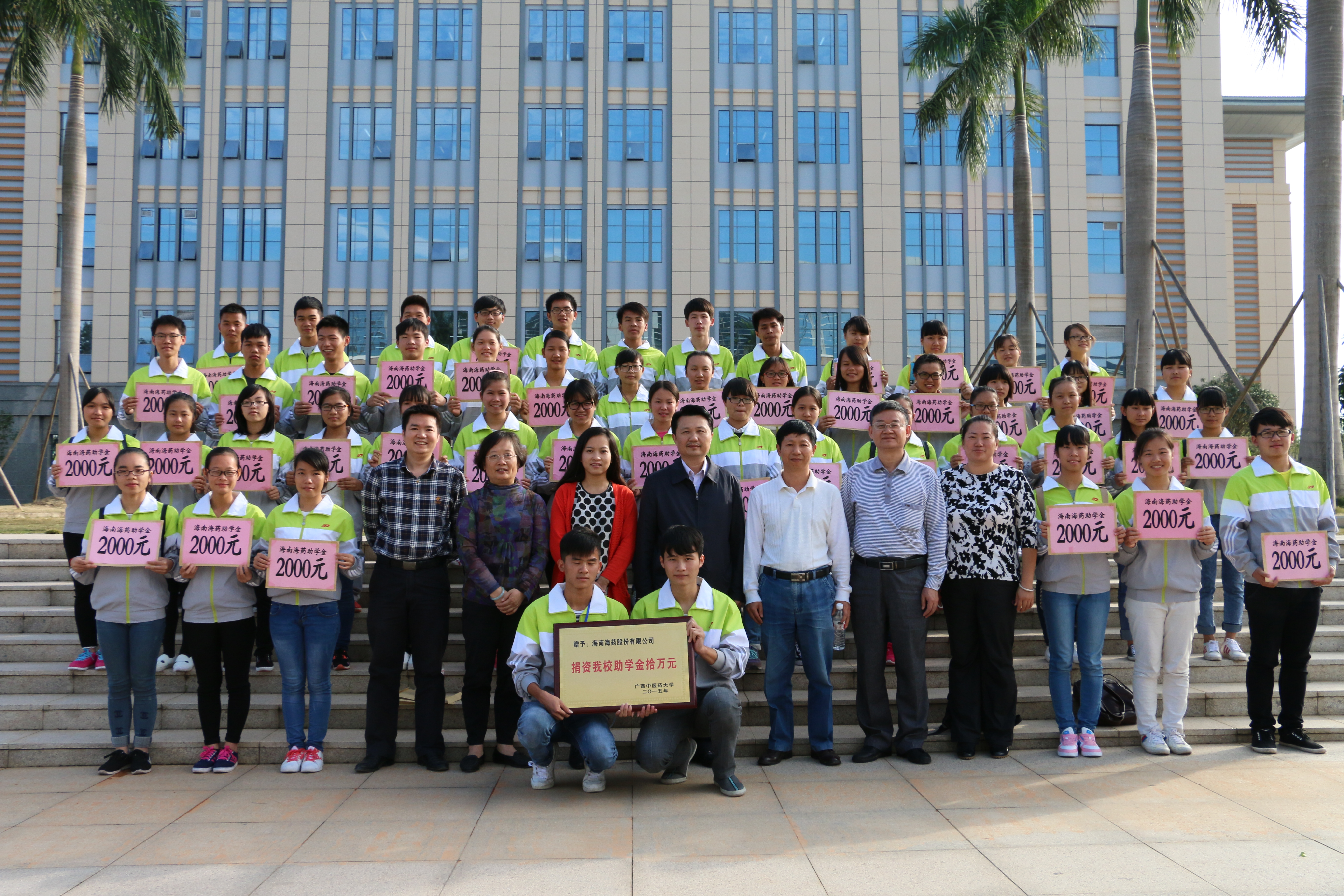 2015年11月2日下午,海南海药股份有限公司助学金颁发仪式于仙葫校区1栋407顺利举行。海南海药股份有限公司陈国林副总经理、beat365官方网站庞宇舟副校长为2015年获得海南海药助学金的45名学生颁发了9万元的助学金。