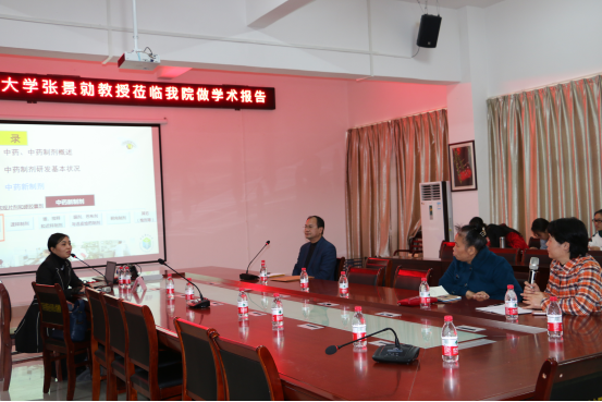 会上,奉建芳院长发表了热情洋溢的讲话,热烈欢迎张景勍教授来药学院讲学,并对药学院教师提出要脚踏实地的开展科研创新的要求。会中,张教授介绍新出中药及中药制剂的发展现状,深入细致讲解了当前中药制剂研发及中药制剂质量标准的提高系列问题,进一步剖析了国内外中药新制剂开发的最新进展,包括常用制剂、速释制剂、缓控释制剂、膜剂、巴布剂与透皮给药制剂、靶向制剂的上市情况、未来发展趋势等。让聆听者精神振奋,耳目一新,参会师生纷纷表示很有收获,为今后从事中药新药开发指明了开拓方向。