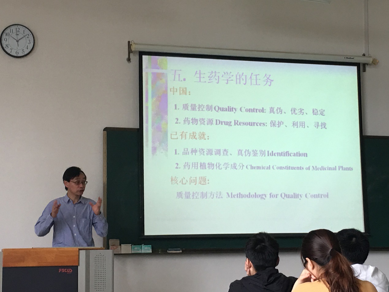 近日,杨世林教授团队的杨明教授、钟国跃教授、王峥涛教授、陈道峰教授及杜力军教授分别给药学院中药学、药学、临床药学专业的本科生授课,教授们分别讲授中药炮制学、中药资源学、药物分析学、生药学和中药鉴定学、药理学等课程。虽然授课时间只有短短的两学时,但课堂上同学们聚精会神地听讲,课后一致表示收获很大。足不出户就可以领略名校学术大家的学识与风采,与专家零距离交流互动,是一次非常珍贵的学习机会,非常值得感受!通过听课,深化了专业知识,拓宽了学术视野,增强了专业兴趣与学药人的责任与担当。