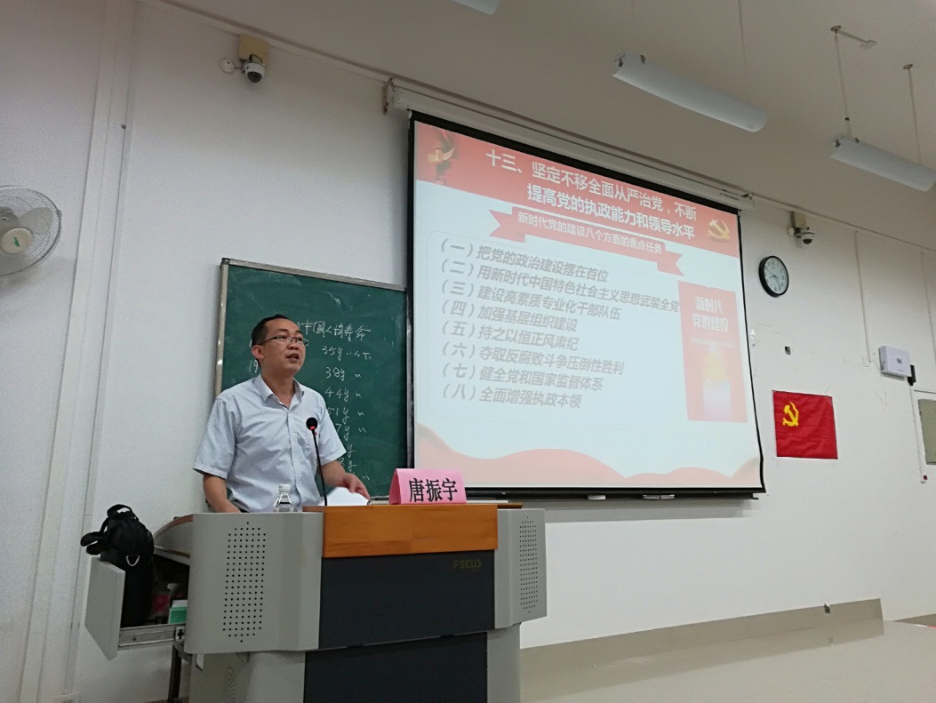 药学院党校培训圆满结束 来源:药学院 发布时间:2018-06-21 11:14:03 浏览次数: 次 【字体:小 大】 6月20日,药学院党校第二十一期入党积极分子暨第二十二期党员培训班圆满结束。此次党校培训开课36个学时,课程安排包括有《党章》《党的十九大报告》《宪法修正案》《习近平新时代中国特色社会主义思想》等9个专题的党的基本知识和最新政策进行解读。培训历时2周,共有110名入党积极分子、发展对象及党员通过课程考试,荣获结业证书。 药学院党委书记蒋林授课剪影 校组织部长唐振宇授课剪影《解读十九大报告》 药学院党校培训班活动剪影 分享到: 【打印正文】
