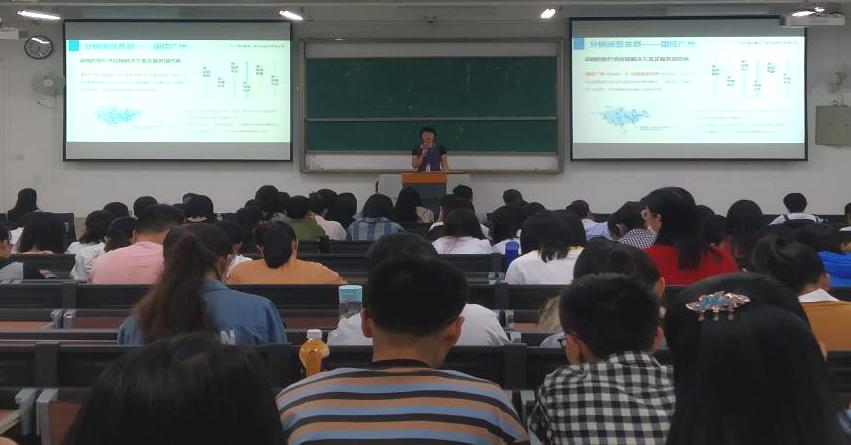 近日,药学院在仙葫校区教学楼1-301教室举行国药控股股份有限公司2020届校园招聘专场宣讲会。国药控股广西有限公司高级经理人吴斌、唐伟来校宣讲。药学院毕业班辅导员吴玉峰主持。