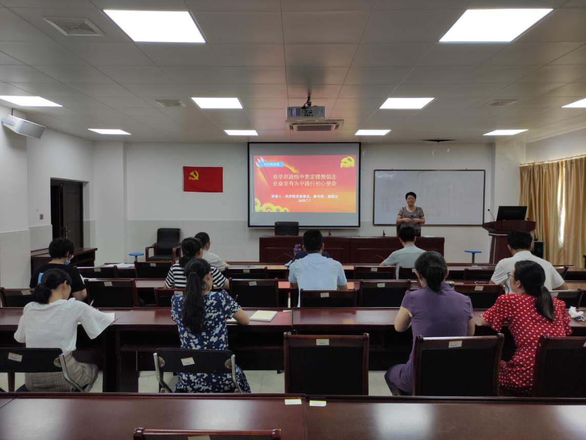 为庆祝中国共产党成立99周年,引导广大党员自觉锤炼党性修养,践行初心使命,2020年7月8日下午,药学院党委委员秦华珍副院长在达道楼B421示教室给中药、中鉴、药植党支部讲授了《在学思践悟中坚定理想信念,在奋发有为中践行初心使命》微党课。