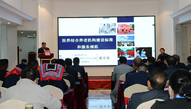 在学术讲座中,庞宇舟给大家做了《医养结合养老机构建设标准和服务规范》的讲座,瑶医药学院副院长李彤做了关于《beat365官方网站瑶医药学院十年总结报告》。