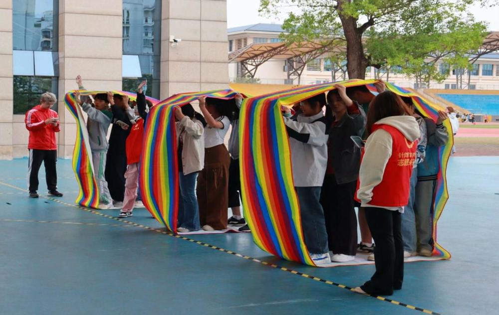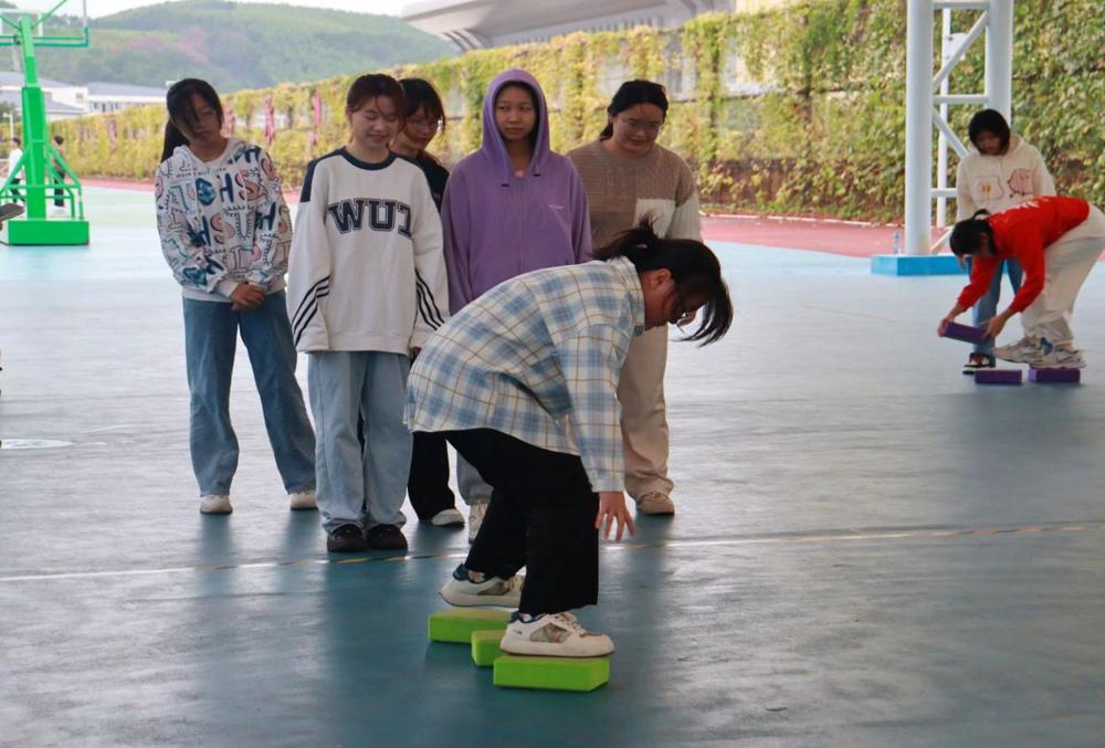 活动伊始,同学们纷纷摩拳擦掌,计划在即将开始的趣味活动中大显身手。第一个项目是“螃蟹赛跑”,一声令下,只见一个个呼啦圈呼啸而出,场上瞬间热闹起来。紧接着的是“摸石头过河”,同学们深谙“行稳致远”的道理,很有默契地放慢了速度,在稳中求胜。而后在“无敌风火轮”这一项目中,同学们在不断的摸索实践中相互协调,在彼此磨合中共同进步。最后一个项目“背对背夹球”更是将同学们默契协作的一面展现得淋漓尽致。