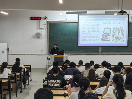 为有效增强我院新生的反诈警觉性与防范能力,10月27日,针灸推拿学院特别邀请南宁市仙葫派出所于佑警官在仙葫校区1-307教室开展反诈宣传教育活动。学办主任姚嘉及2025级辅导员彭阳,全体2025级新生参加活动。