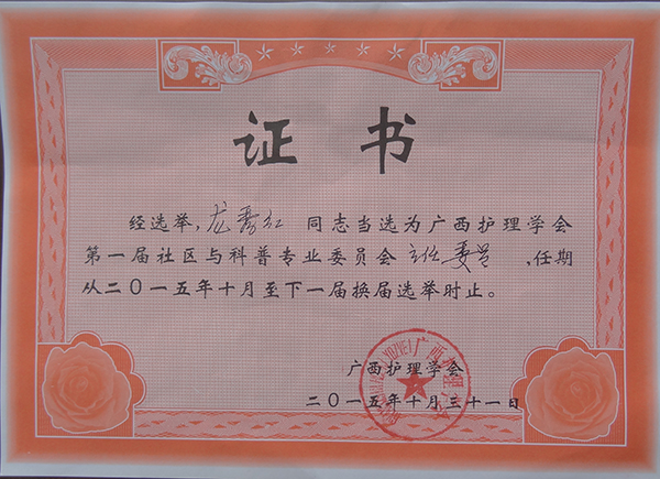 经过大会选举,瑞康医院护理部副主任龙秀红当选为首届广西护理学会社区与科普专业委员会主任委员,大外科护士长李勉当选为秘书,骨科护士长蒋娟当选为委员。