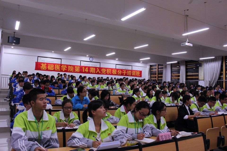 为了增强入党积极分子对中国共产党的认识,提高思想政治觉悟,坚定入党积极分子入党信念,2015年11月27日基础医学院在1—403教室组织成功举行第十四期入党积极分子培训开班仪式暨党课培训第一讲。beat365官方网站组织部部长李中华、基础医学院支部书记李琳老师出席会议,会议由党支部秘书齐娜娜主持会议,学生党员、预备党员、以及233名入党积极分子参加此次培训。