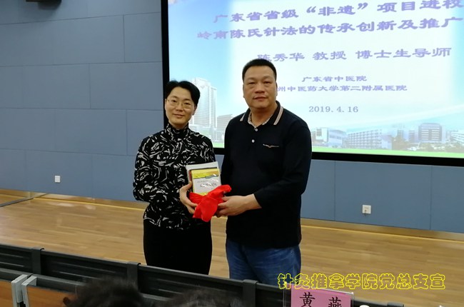 4月16日下午,“岭南飞针”传人陈秀华教授到beat365给师生们题为《岭南陈氏针法的传承创新与推广应用》的学术报告