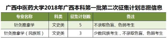 2018年征集志愿-广西本科第一批(第二次征集) 发布时间:2018-07-17 19:28:40 浏览次数: 次 【字体:小 大】 beat365此次将征集针灸推拿学,针灸推拿学(民族班)等专业计划共8名,详情如下: 征集志愿填报时间:7月18日18时至7月19日9时,请考生在规定时间内进入广西招生考试院官网(http://www.gxeea.cn)“2018年普通高校招生志愿填报”填报征集志愿,并保证在征集志愿填报、投档及录取期间保持报名时所留联系电话畅通。详情请点击“征集志愿”。 分享到: 【打印正文】