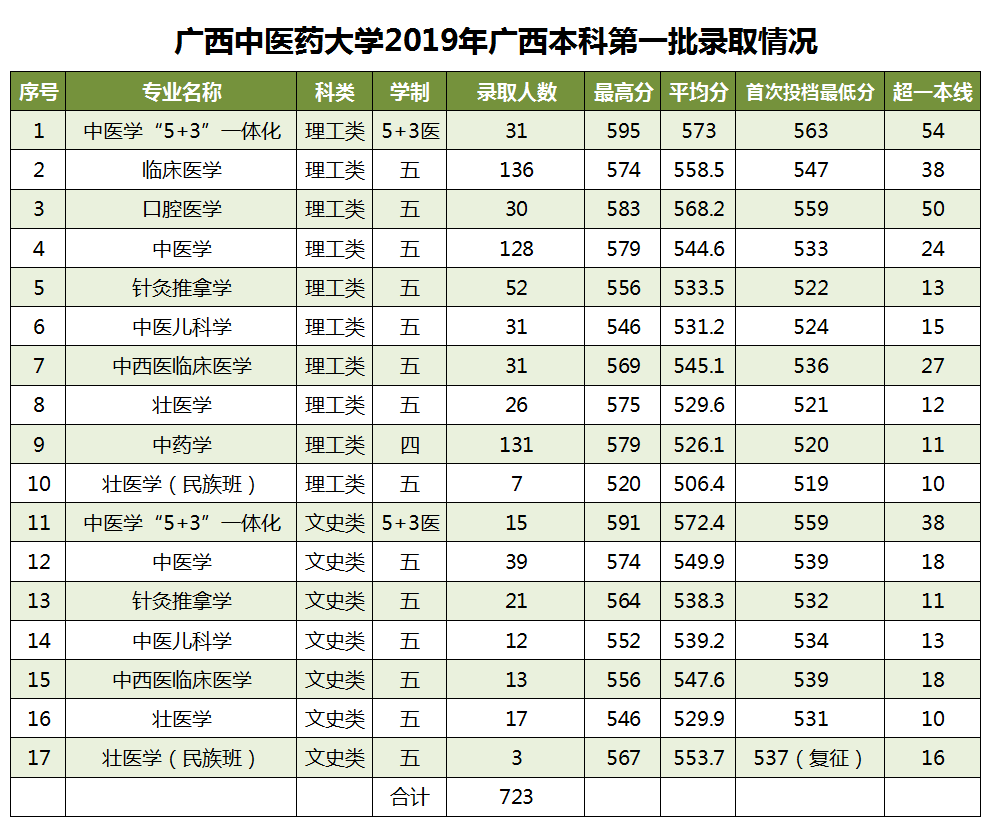 2019年录取进展-广西本科第一批 发布时间:2019-07-20 10:32:44 浏览次数: 次 【字体:小 大】 beat3652019年在广西本科第一批共录取考生723名(含民族班10名),详情如下: 注:广西2019年本科第一批录取控制分数线为:理工类509分,文史类521分。 录取结果以广西招生考试院公布为准,请被录取考生保持报名时所留联系电话畅通以查收录取通知书。 分享到: 【打印正文】