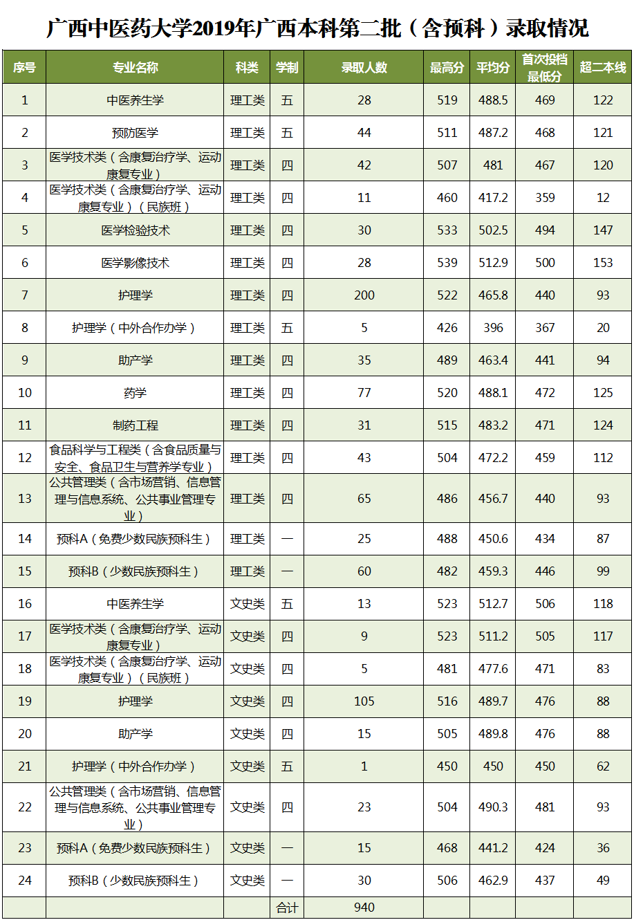 2019年录取进展-广西本科第二批(含预科) 发布时间:2019-08-02 10:55:58 浏览次数: 次 【字体:小 大】 beat3652019年在广西本科第二批共录取考生940名(含预科生130名、民族班16名),详情如下: 注:广西2019年本科第二批录取最低控制分数线为:理工类347分,文史类388分。 录取结果以广西招生考试院公布为准,请被录取考生保持报名时所留联系电话畅通以查收录取通知书。 分享到: 【打印正文】