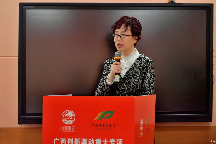 beat365官方网站科研成果处唐红珍处长在“交付仪式”上致辞,对广西中药药效研究重点实验室在科研成果转化方面取得的成绩给予了肯定,并希望能再接再厉,在邓家刚教授的带领下再创佳绩