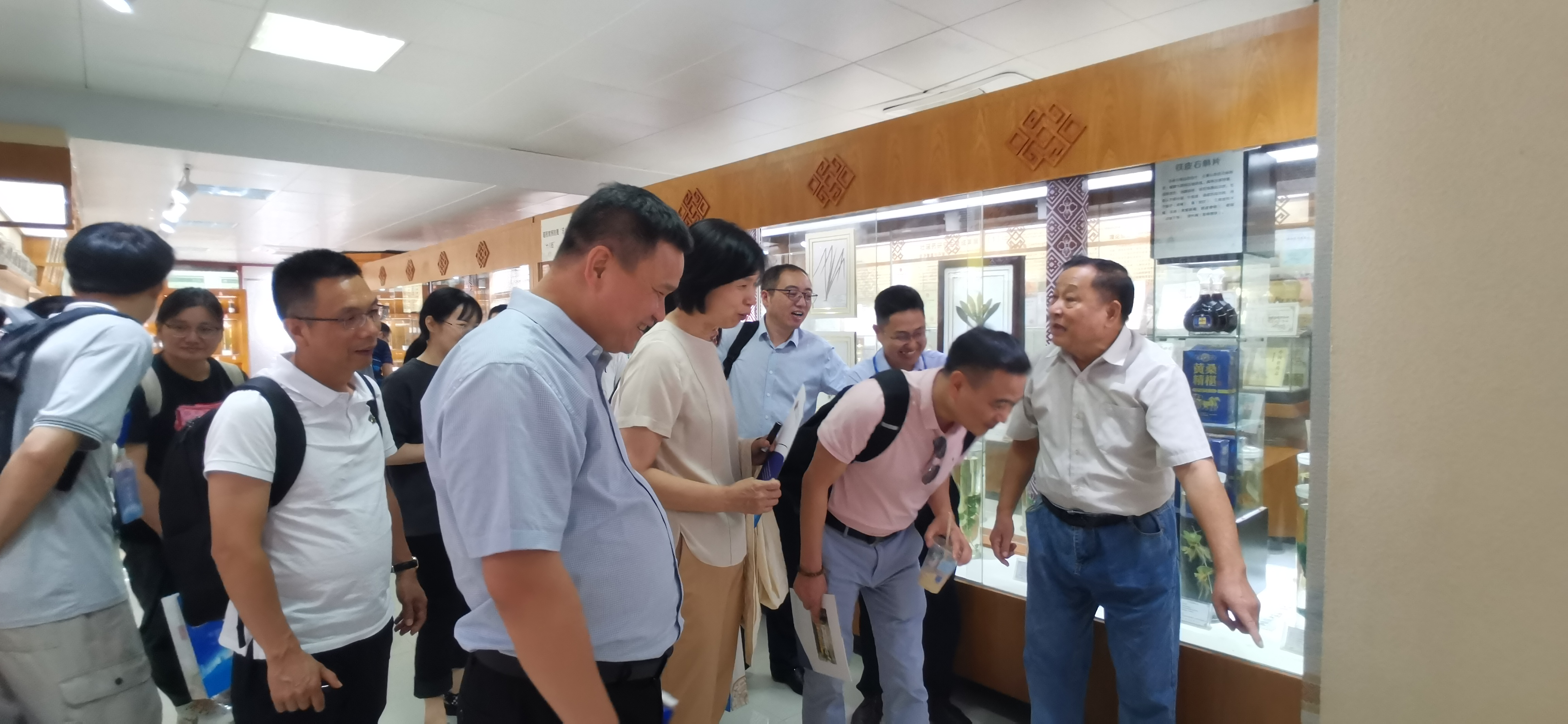 9月2日下午,在广西中药民族药产业科技专项“广西中药民族药产业集群协同攻关与优势产品提质增效研究”项目启动会后,桂林医学院副院长陈旭及桂林三金、田七家化、桂林华诺、金秀荟萃等企事业领导专家段小群、刘海萍、黄龙、赖树生、韦忠明、黄良安等莅临我平台交流合作。我平台骨干接待了他们,朱华教授向他们介绍了我平台在壮瑶药研究等方面的成果,他们参观了展厅、实验室。陈旭副院长等对我平台取得的发展成果表示高度赞扬,希望通过双方交流合作,推动壮瑶医药文化发展传播。