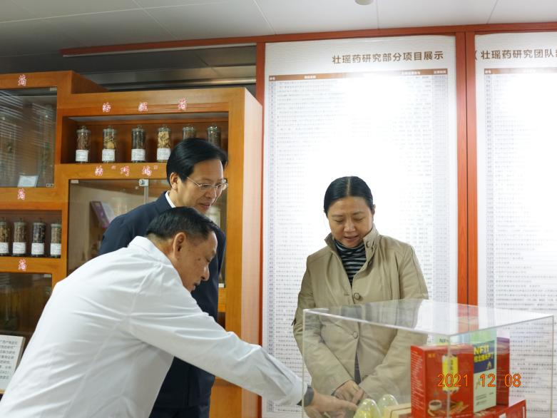 2021年12月8日下午,自治区政协副主席刘慕仁一行在beat365姚春校长陪同下莅临我平台(广西壮瑶药重点实验室、壮瑶药协同创新中心、广西民族药资源与应用工程研究中心等)考察调研。