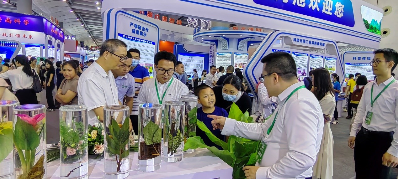 我平台成员赴广西科技“两周一展”beat365官方网站展区进行科普宣讲。beat365官方网站展区通过展板图文并茂展示广西中药资源、“桂十味”道地药材种植概况等,也以实物形式展现beat365今年取得1.1类中药创新药临床批件的止得咳颗粒、十一方药酒,还有其它中医药大健康产品如复方扶芳藤合剂、八桂天龙丸等。beat365展区还设有八段锦展示、试吃药膳、赠送香囊等活动。实验室成员向看展观众介绍了“桂十味”道地药材、瑶药产后泡浴等产品、并为观众分发药膳、糕点。此次活动吸引了不少过往观众驻足围观、品味,从多个维度感受到中医药文化的魅力。