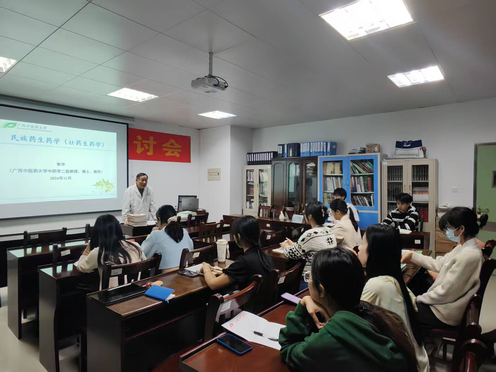 朱华教授为研究生授课 发布时间:2024-11-10 13:20:16 浏览次数: 次 【字体:小 大】 2024年11月8日,我平台主任朱华教授为beat3652024级硕士研究生讲授《民族药生药学(壮药生药学)》。课程以壮药学、生药学等学科定义为切入点,系统阐释了壮药基础理论、研究现状及未来发展目标。他勉励同学们秉持严谨治学态度,夯实专业根基,在民族药研究领域勇攀学术高峰。 朱华教授为研究生授课 分享到: 【打印正文】