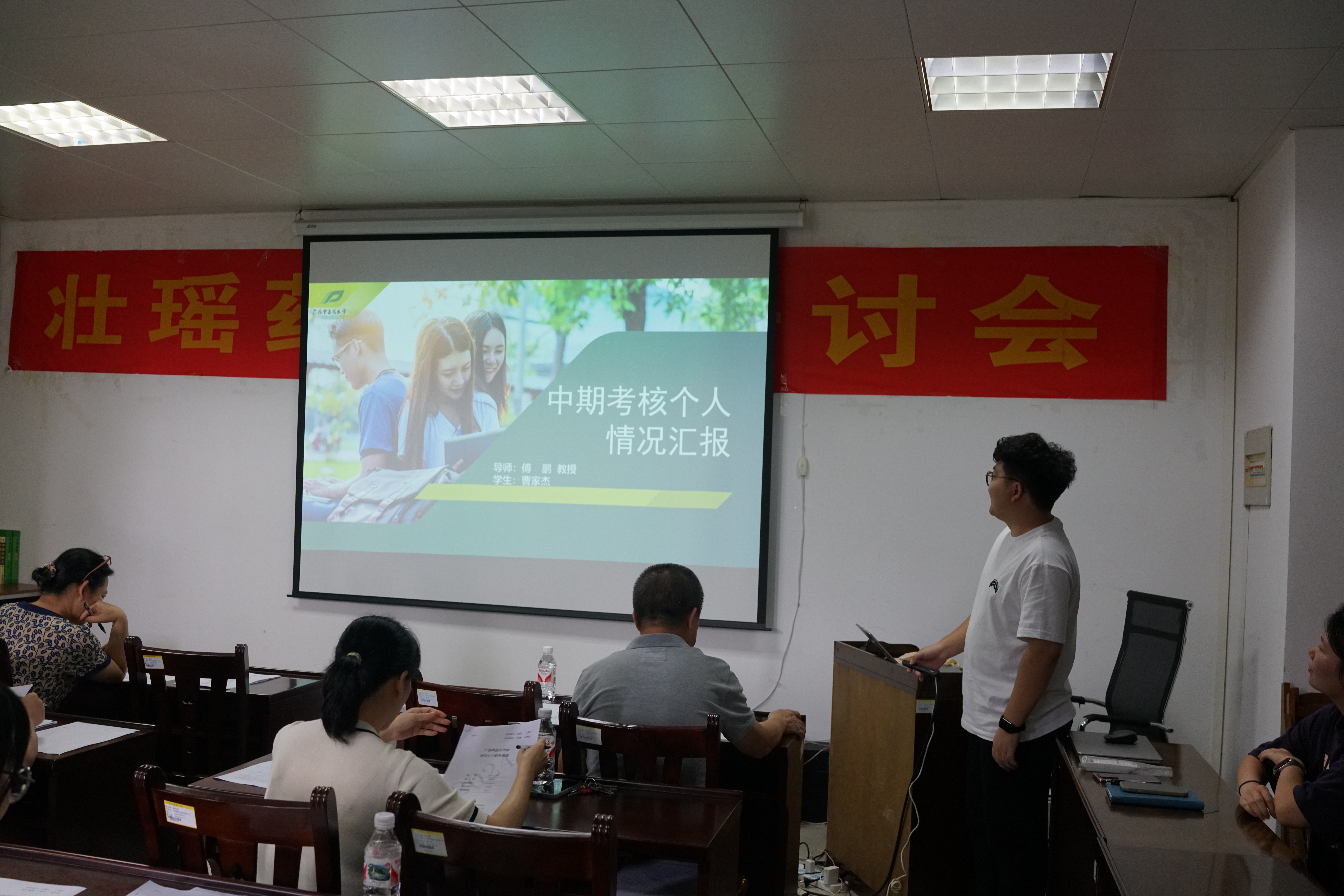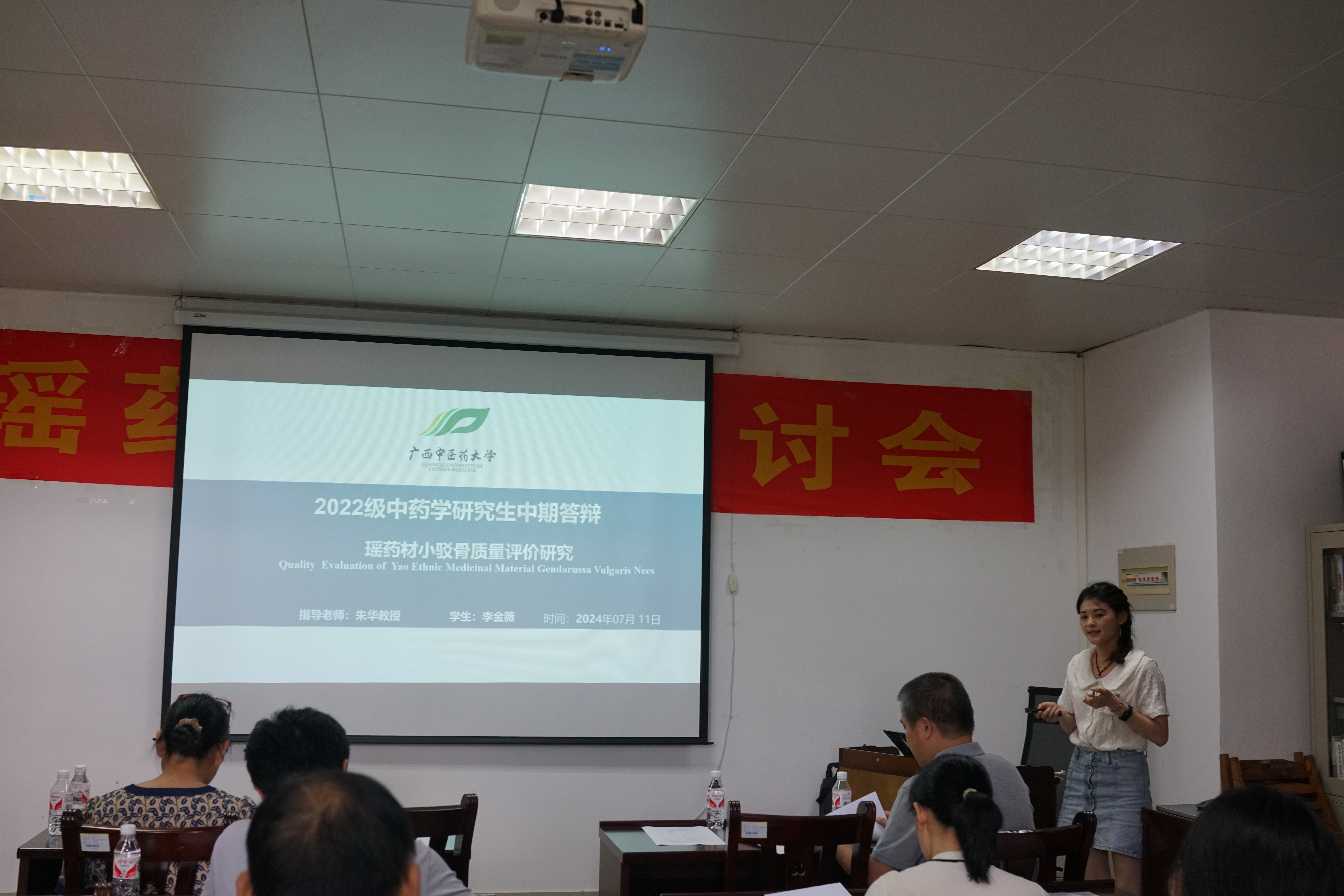2024年7月11日星期四下午14:30,壮瑶药重点实验室2022级研究生王冰冰、曹家杰、罗慧敏、秦丹、李金薇、徐小勤在格物楼C408进行了2022级研究生中期考核答辩。考核专家小组由朱华教授、滕建北教授、梁子宁教授、戴忠华副教授、黎理副教授组成,张淼老师为答辩组秘书。