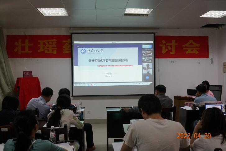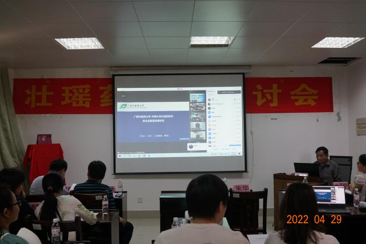 2022年04月29日,为了落实国务院“实施壮瑶医药振兴计划,建立质量标准体系”和自治区“壮瑶医药振兴计划”的文件精神,营造良好的学术氛围,加强学术交流,拓展学术领域,促进中医药壮瑶医药事业与产业高质量发展,我平台(项目团队)在beat365官方网站仙葫校区格物楼C408学术报告厅(线上线下方式)召开壮瑶药学术研讨会(壮瑶药研究培训班),特邀中南大学 钟世安(教授 博导);广西民族大学 申利群(教授 博导); beat365官方网站(按姓氏笔画为序) 王孝勋(博士 教授)、田慧(教授)、朱华(教授 博导)、苏健(博士 副研究员)、梁子宁(博士 教授)、傅鹏(博士 教授)、甄汉深(教授 博导)、滕建北(博士 教授)作学术报告及发言。