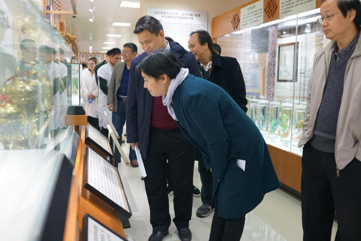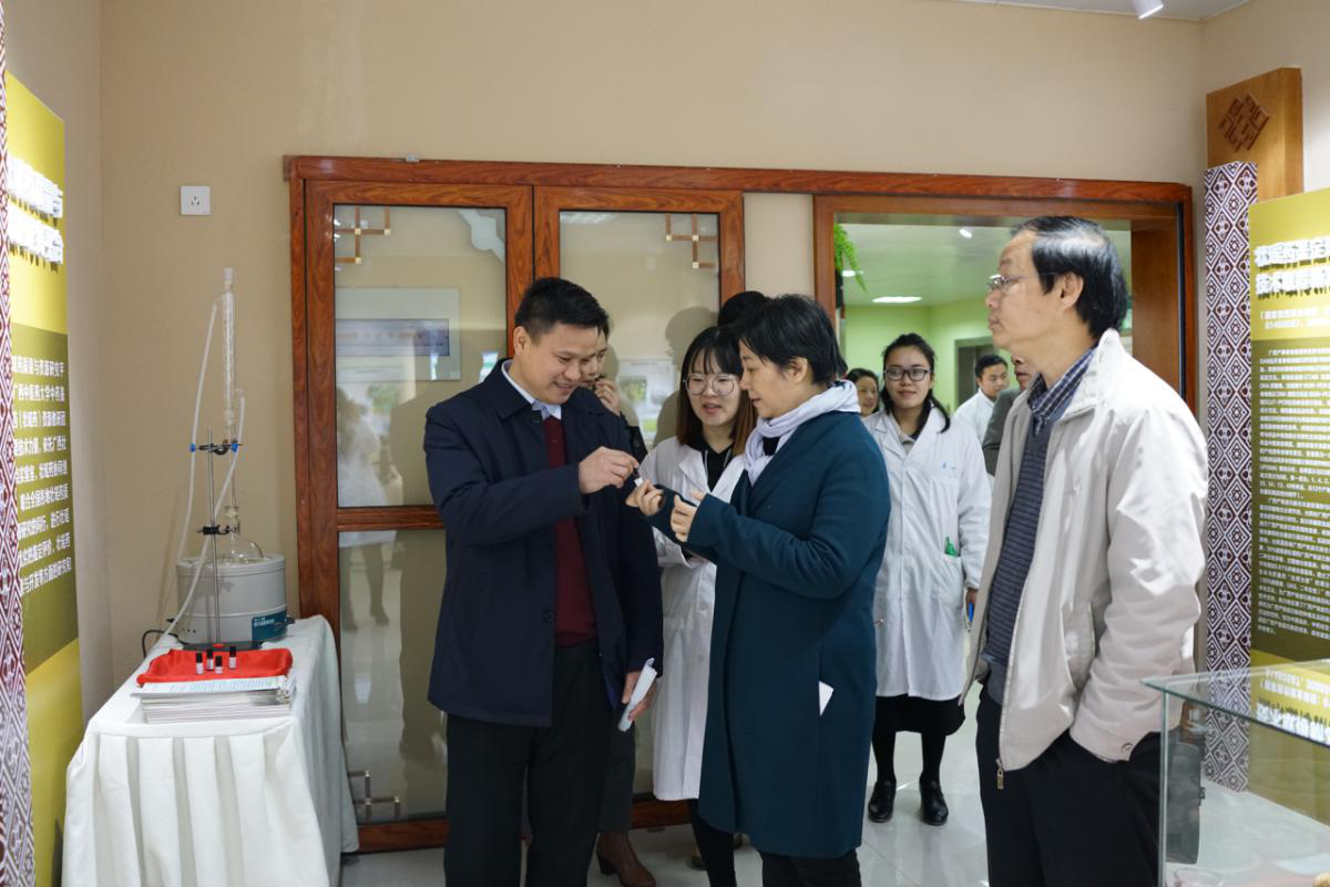 2019年1月16日上午,自治区中医药管理局姚春局长、beat365戴铭副校长莅临我实验室指导工作,姚春局长、戴副校长一行考察我实验室主办的壮瑶药研究成果展暨壮瑶药资源普查标本库及数据中心,本平台副主任傅鹏博士、苏健博士首先代表本实验室主任朱华教授对各位莅临表示热烈欢迎和衷心感谢,并就壮瑶药理论传承、资源普查、质量标准三个方面的研究成果进行了汇报。姚局长对本实验室工作所取得的成绩给予高度肯定。对本实验室自主研发的壮瑶药产品百合玉竹酒和黄精桑葚酒表示赞扬。她表示,继续大力支持壮瑶药协同创新中心、壮瑶药重点实验室的科技工作,特别是壮瑶药高质量成果产业化工作。自治区中医药管理局副局长陈赤、处长黎甲文 、副处长刘畅和beat365邓家刚教授、陈勇教授及夏天、覃海、张雯艳等参加本次活动。