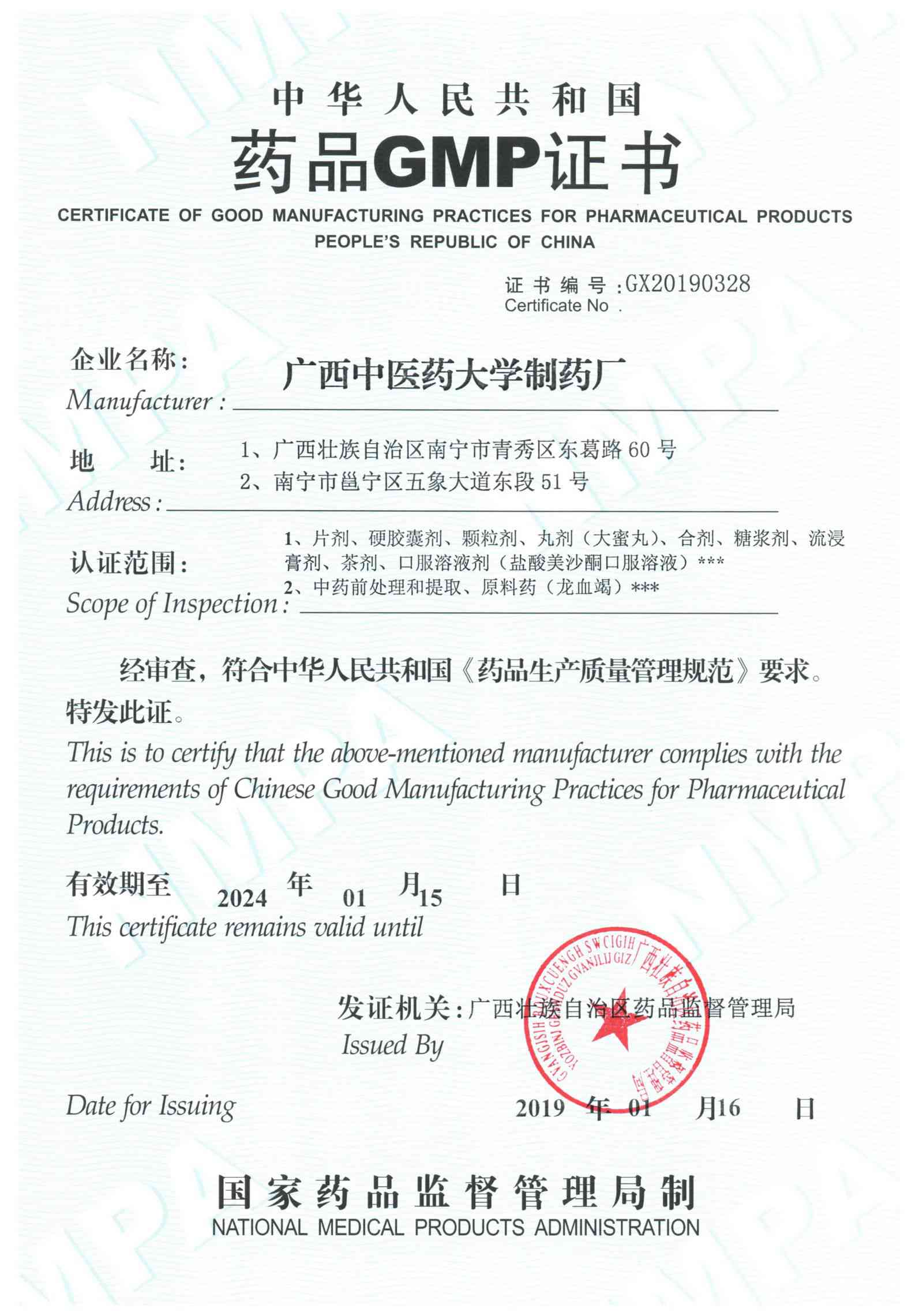 近日,由广西壮族自治区药品监督管理局审评认证中心组织的药品GMP现场检查验收专家组,到beat365制药厂进行GMP认证检查,专家组对制药厂化验室、生产车间(片剂、硬胶囊剂、颗粒剂、丸剂(大蜜丸)、合剂、糖浆剂、流浸膏剂、茶剂、口服溶液剂、中药前处理和提取、原料药等)、留样室、制水车间等进行了实地考察验收,并对制药厂职工档案、规章制度、批生产记录、留样记录、生产工艺规程、成品销售记录等资料进行了认真审核查验。专家组本着公正、公平的原则,以认真负责的态度,对照新颁发的《药品生产质量管理规范(2010年修订)》的规定,通过三天时间的全面考察,专家组对制药厂各项工作给予了高度的肯定,制药厂最终以优异的成绩顺利通过了药品GMP认证。