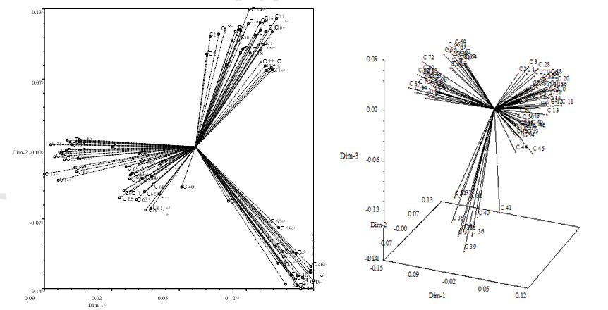 图 7 不同居群锡叶藤PCoA 二维图 图 8 不同居群锡叶藤 PCoA 三维图
