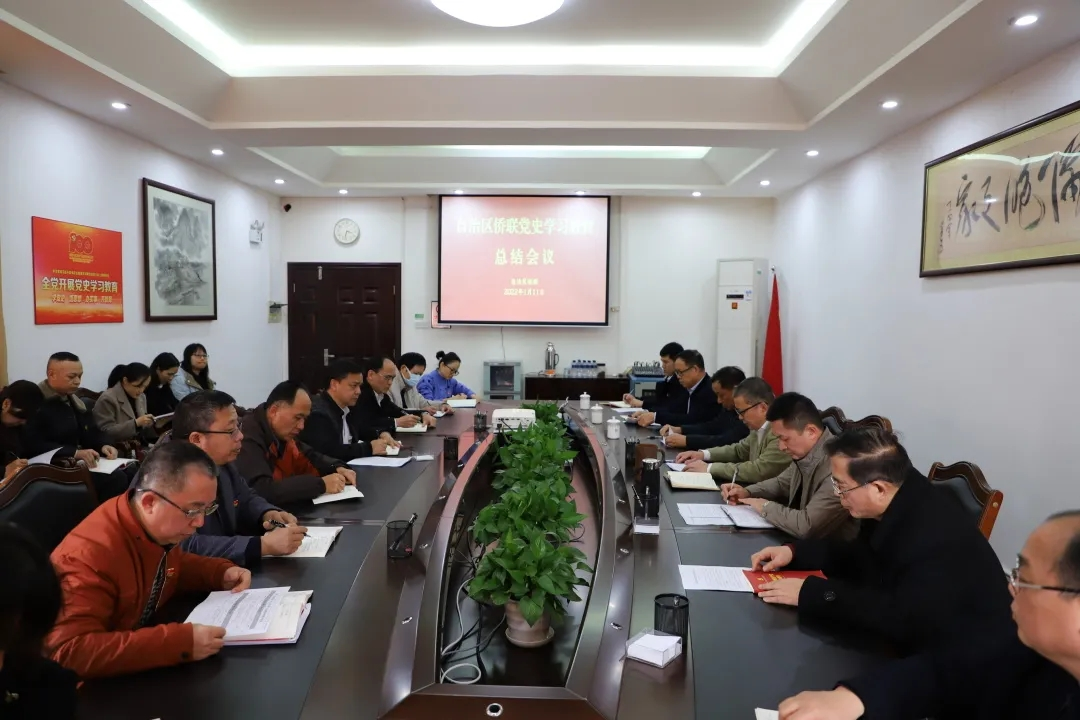 谭斌强调,学习党史是一项永恒课题和党员的终身任务,我们要把党史学习教育作为加强党的建设的一项重要任务,大力弘扬伟大建党精神,持续巩固拓展党史学习教育成果,切实将党史学习教育焕发出的爱党爱国热情转化为奋进新征程、建功新时代的强大动力和实际行动,结合侨联工作实际,建立常态化、长效化机制,巩固拓展党史学习教育成果,深入开展为民办实事,推动工作迈上新台阶。一是不断提高政治站位,深化党史学习教育。要以习近平新时代中国特色社会主义思想为指导,深化党史学习教育,深入学习党的十九大、十九届历次全会精神,推动学深悟透党的创新理论,弘扬伟大建党精神,引领侨界群众坚定走好中国道路、实现中华民族伟大复兴的信心和决心。二是学史明理引领思想,团结凝聚侨界力量。要紧紧围绕增强国际传播能力建设需要,用侨的语言、侨的声音、侨的路径,把侨界群众思想和行动统一到党中央要求上来,以强烈的历史主动精神团结凝聚广大侨界群众为建设新时代中国特色社会主义壮美广西贡献力量。三是树牢人民至上理念,为民办实事解民忧。牢固树立人民就是江山、江山就是人民的意识,心怀让人民幸福是国之大者,坚持把为群众办实事实践作为检验党史学习教育成效的重要载体,立足侨联工作实际,继续推动解决归侨侨眷、海外侨胞、侨资企业等最关心最直接最现实的困难问题。四是拓展学习教育成果,服务高质量发展。要用好党史学习教育成果,把汲取到的智慧和力量,体现到深入贯彻落实习近平总书记视察广西“4.27”重要讲话精神和对广西工作系列重要指示要求上来,体现到完整准确全面贯彻新发展理念、全力落细落实“1+1+4+3+N”目标任务上来。