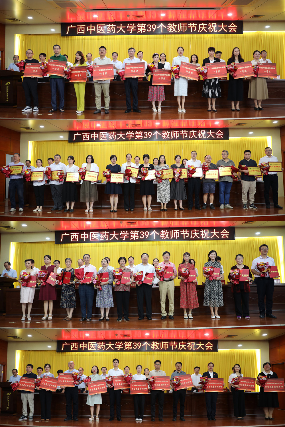躬耕教坛,强国有我。9月8日上午,在第39个教师节来临之际,beat365在仙葫校区图书馆第二会议室举行教师节庆祝大会。学校党委书记莫锦荣,党委副书记、校长姚春,党委副书记何并文,党委副书记、纪委书记覃宇环,党委副书记邹勇,副校长何刚亮、李典鹏、唐振宇、肖健、岳桂华,各单位、部门负责人,教学督学专家代表,受表彰教师及学生代表等400余人出席主会场活动,各二级学院、附属单位还设置分会场并组织师生代表收看庆祝大会实况。大会由唐振宇主持。莫锦荣书记在讲话中指出,学校深入学习贯彻习近平新时代中国特色社会主义思想,落实立德树人根本任务,扎实推动学校各项事业高质量发展,各项工作都取得了明显成效,交出了一张令人满意的答卷。姚春校长在讲话中指出,学校全面贯彻落实习近平总书记的重要指示精神,在习近平新时代中国特色社会主义思想的指引下,学校大力推进“人才强校”战略,努力打造高素质教师队伍,教师思想政治与师德师风建设日见成效,高层次教师队伍建设数量质量不断提升,教育教学改革成效显著。会上,我平台田慧教授、韦安达等骨干上台领奖。