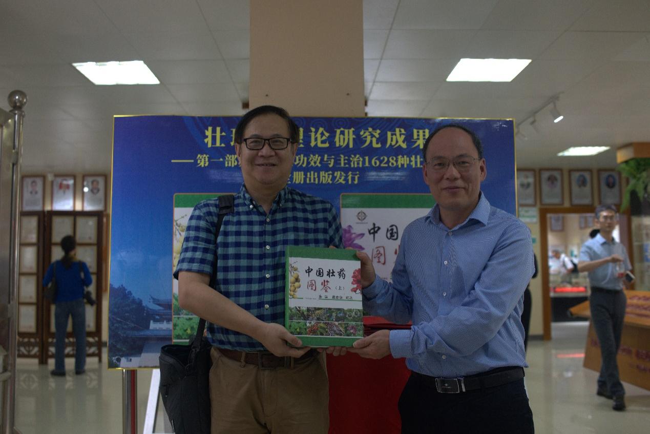 为进一步加强壮瑶药开发利用情况的交流学习,11月09日上午,九三学社领导专家宋尚桂(九三学社中央组研中心主任、山东省政府参事),秦  松(全国政协委员、烟台市政协副主席、九三学社山东省委会副主委)及张桂德、李 斌、秦世杰、唐建辉、李  胜、江  涛、杨剑超、冯大伟、刘正一、庄龙传等一行莅临我平台考察交流,beat365党委副书记邹勇、统战部部长姜建萍等参加考察交流,实验室主任朱华教授介绍壮瑶药开发利用情况,并讲述了壮、瑶医药理论及一大战略:壮瑶医药振兴计划,建立质量标准体系,五大突破:理论突破、资源突破、标准突破、产品突破、人才培养突破,并向他们汇报了实验室建设及科研成果情况、中药资源普查数据库、标本库、新药龙血竭以及实验室产品兰香草精油等。宋尚桂、秦松等对我平台的热情接待表示感谢,并对平台发展建设及成果表示肯定且给予高度评价。秦松副主席在嘉宾册上签名留念并写下”中国壮药发展壮大推陈出新走向世界”的美好愿景。