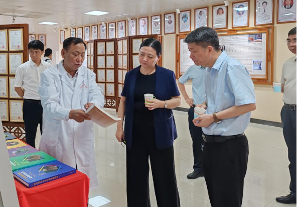 会后,beat365党委副书记、校长姚春,党委常委、副校长肖健和广西师范大学党委副书记、校长孙杰远及党委常委、副校长宋树祥、沈星灿、原校长梁宏等一行九人实地调研了广西壮瑶药重点实验室[ 壮瑶药协同创新中心、广西壮族自治区民族药资源与应用工程研究中心、壮瑶药材开发及产业化广西高校工程研究中心、国家药监局中药材质量监测与评价重点实验室(联合单位)]。实验室负责人介绍了平台建设情况,重点展示了壮瑶药理论与实践应用研究成果、科技奖项、中药资源普查标本库、壮瑶药标本数据中心以及自主研发的兰香草精油等产业化成果和团队编著出版的《壮瑶药研究》、《中药光照鉴定学》等前沿学术专著。