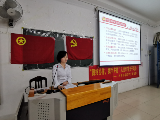 廖莹莹作为主持人详细讲解了中国共产党发展党员的工作规定及注意事项。认真解答了学生在入党过程中的热点问题,如“未满18岁能否提交入党申请书,未满19岁能否发展为预备党员?”、“如何确定为入党积极分子?”、“入党积极分子培养考察期1年如何算?”以及毕业生党员组织关系等问题。    本次学习会上,入党积极分子对学工党支部发展党员工作程序有了清晰明确的认识,熟悉了入党的规定和相关细节。