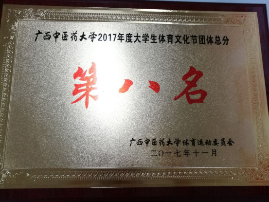 运动健儿们经过两天挥汗如雨、精彩激烈的拼搏,凭借顽强的斗志和雄厚的实力,为壮医药学院的取得了团体总分第八名的好成绩。