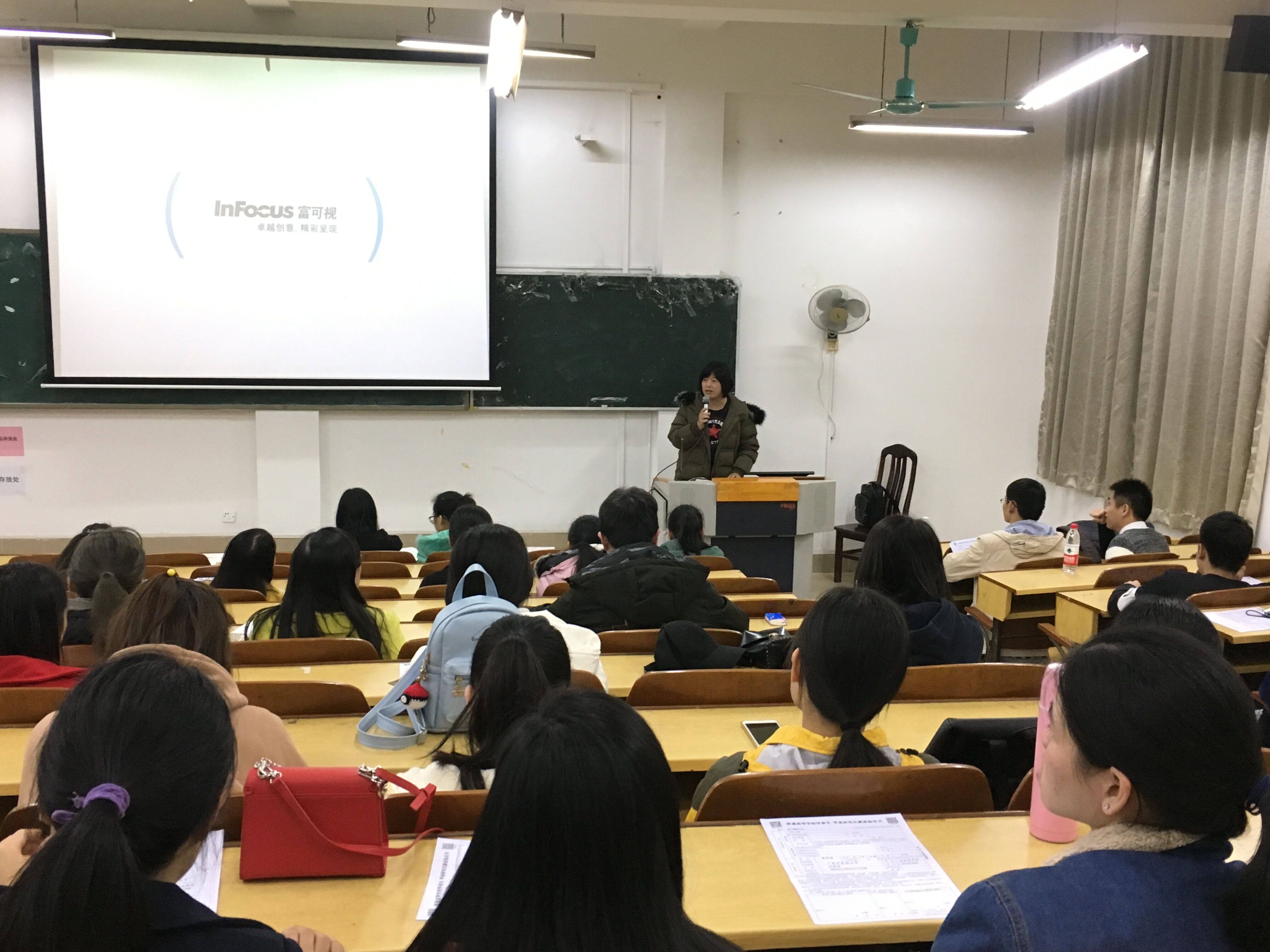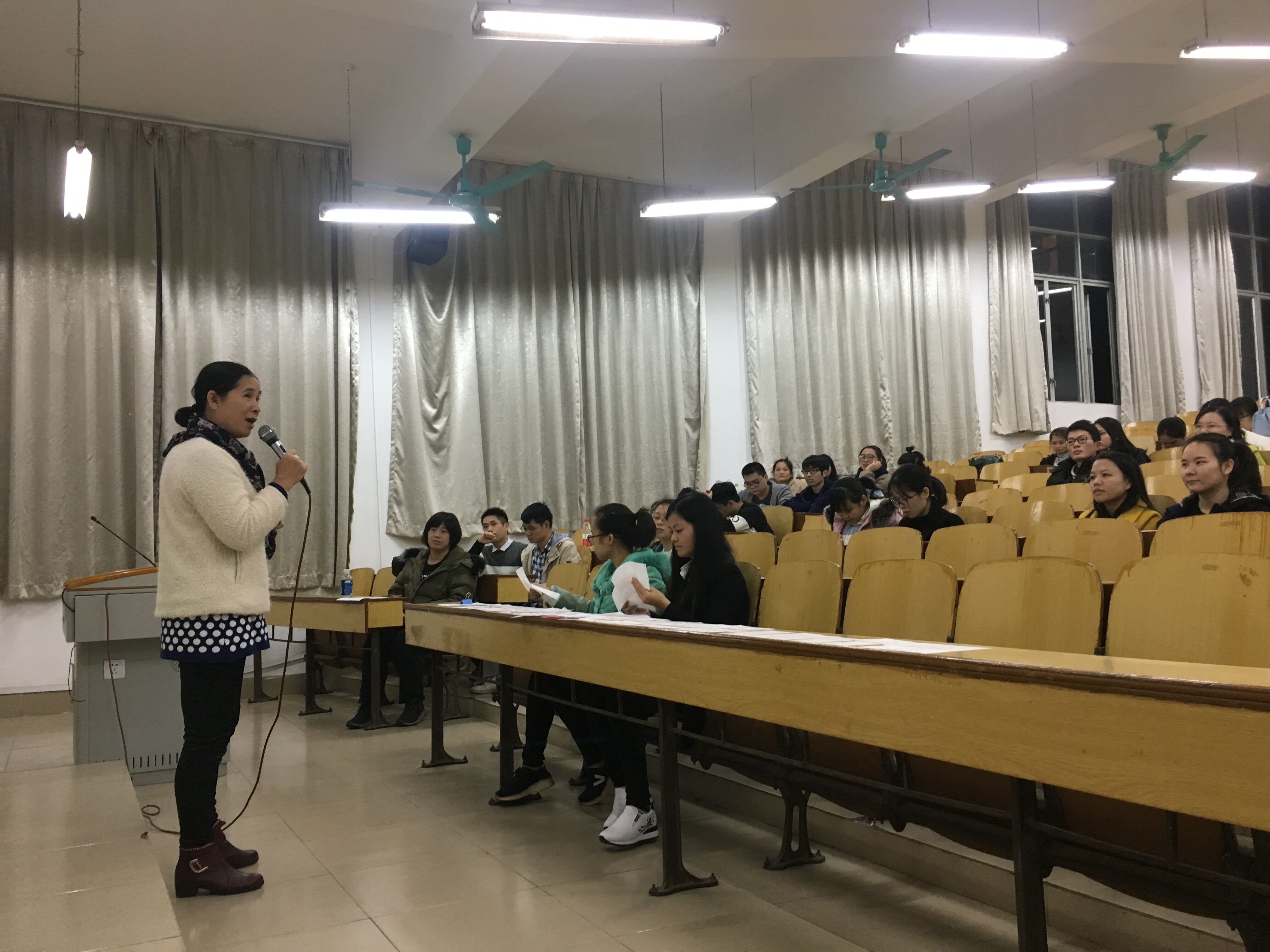刘婷老师首先详细解读了《普通高等学校毕业生就业协议书》的填写,强调同学们在与单位签协议时要慎重考虑;然后介绍此次双选会与同学们专业相关的岗位和招聘医院、公司的基本信息,分析此次用人单位对壮医专业的需求特点。