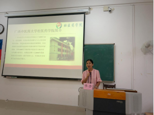 首先,由壮医药学院院长蓝毓营介绍学院的特色文化并让各位新生做好大学规划,充分利用大学的学习时间,努力学习专业知识,为特色民族医药的发展奉献力量。接着,由壮医药学院副院长韦杏向各位新生提出了殷切希望,愿各位同学奋发图强,拥有一个充实丰富的大学生活!