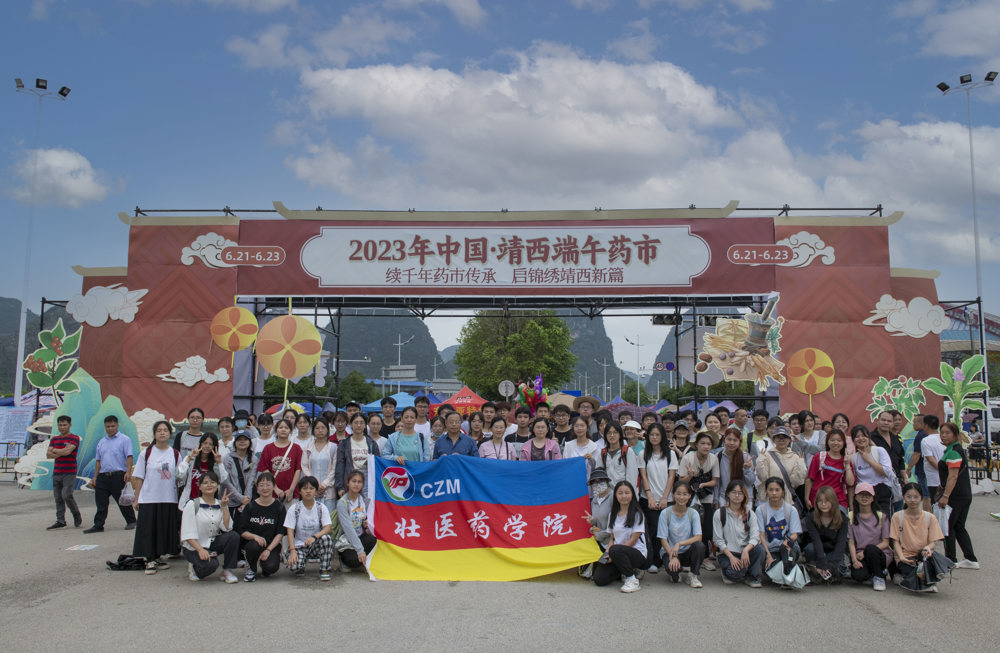 2023年6月22日,壮医药学院2022级壮医学专业学生在院长蓝毓营教授带队,壮医方药学教研室教师温海成、阎莉、罗彭老师带教下前往靖西端午药市进行《壮药学》药市见习教学活动。