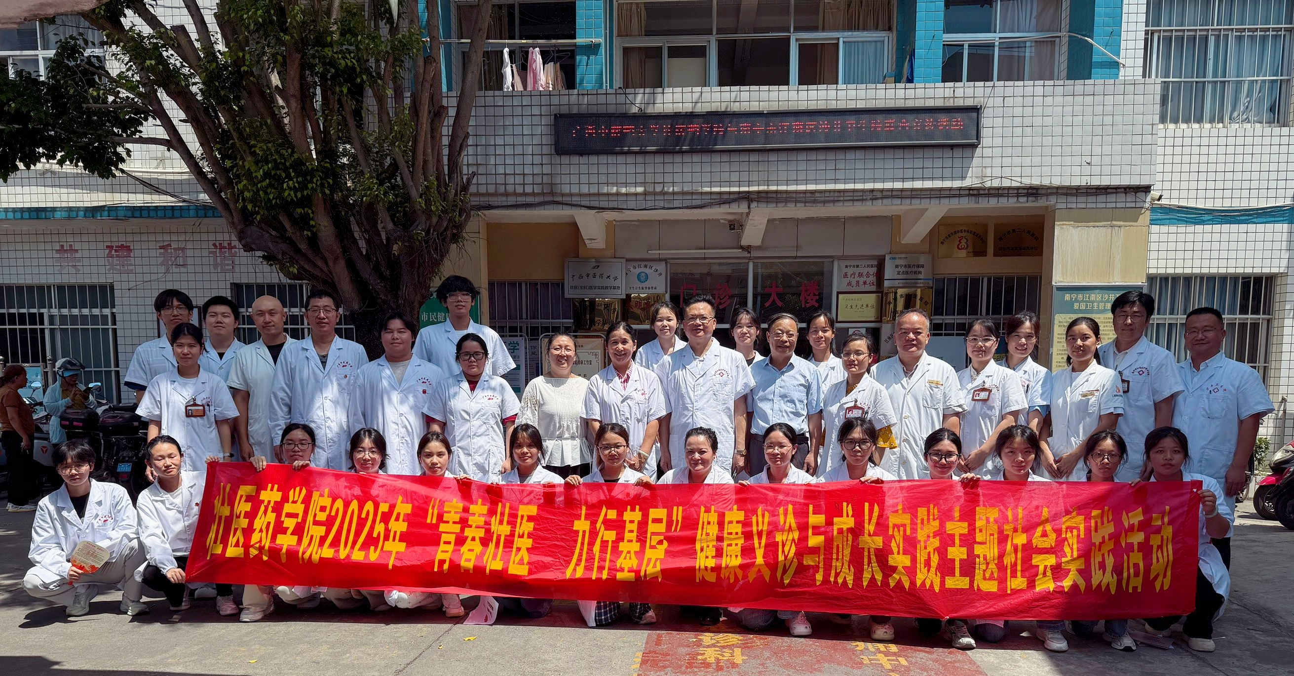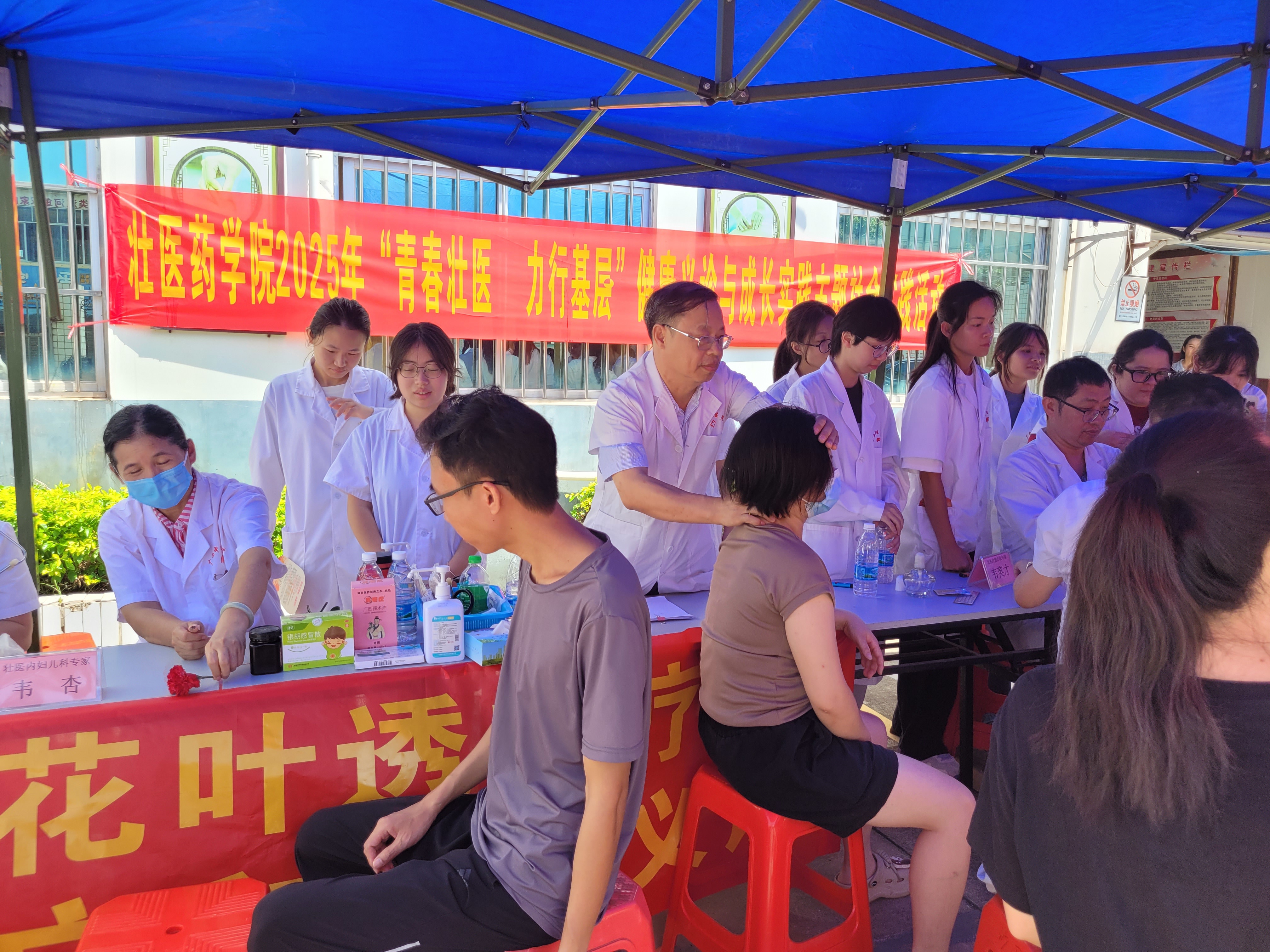 “青春壮医·力行基层”健康义诊与成长实践主题社会实践活动 发布时间:2025-07-05 14:13:38 浏览次数: 次 【字体:小 大】 2025年7月4号上午,由学院领导带队的壮医药学院2025年“青春壮医·力行基层”健康义诊与成长实践主题社会实践活动在南宁沙井卫生院顺利开展,本教研室蓝毓营教授在现场和学生们一起为现场群众进行健康义诊,展示壮医药文化的独特魅力! 为群众进行手法治疗 活动结束后合影留念 分享到: 【打印正文】