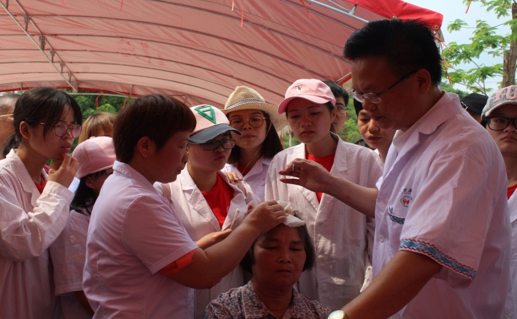 2017年5月6日,壮医药学院来到南宁良庆区龙凤谷开展了“立夏 养生节”下乡义诊活动。beat365官方网站庞宇舟副校长,壮医药学院蓝毓营院长、韦英才副院长莅临现场指导,壮医药学院团委副书记刘婷老师,教学办张青槐老师以及2013级壮医学专业35名学生参加了此次活动。