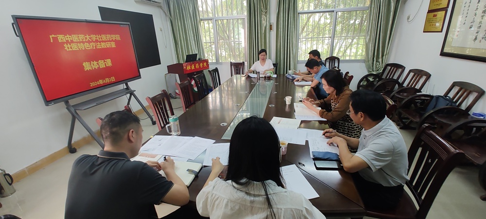 2024年4月2日,壮医药学院壮医特色疗法教研室进行集体备课。教研室全体教师参加,学校督导组专家刘燕平教授、梁明康教授列席。
