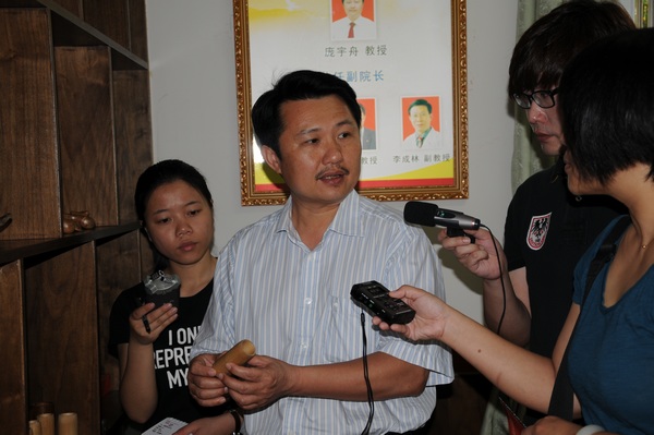 2012年4月16日上午,中央人民广播电台民族中心节目主管李熳川一行来到壮医药学院对庞宇舟副校长进行了专访。