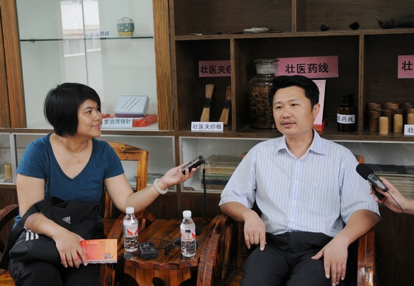 同期记者们也对壮医药学院院长林辰、副院长卢汝梅和韦松基教授进行了采访。
