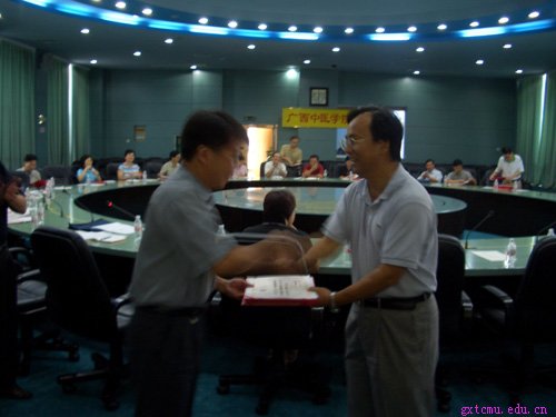 为了建立起一支热爱壮医药事业、结构合理、专兼职相结合、相对稳定的壮医药师资队伍,壮大我院壮医药教学和学术队伍力量,以满足我院壮医药教学、科研、临床工作的需要。9月7日下午,学院在会展中心多功能厅召开了壮医药学术(师资)队伍建设座谈会。参加会议的有学院邓家刚副院长、壮医药系领导班子全体成员以及来自各二级学院、有关部门和广西民族医药研究所等单位从事过壮医药教学、科研或临床工作、担任壮医药系列教材主要编写工作以及参与过壮医药课题研究的教师、临床医师和科研人员共40多人。会上,壮医药系主任庞宇舟首先就壮医药学科、学术(师资)队伍建设目标、工作思路作了发言。接着与会者围绕壮医药学科、学术(师资)队伍建设有关问题展开了热烈的讨论。最后邓家刚副院长对壮医药学术(师资)队伍建设提出了具体的希望和要求,并代表学院给43名壮医药兼职教师颁发了聘书。